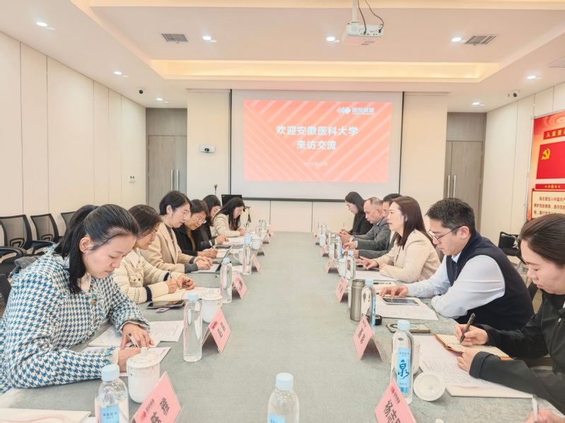 副院长赵梅率队前往国投健康产业发展(合肥)有限公司(以下简称“国投健康”)考察交流,国投健康产业投资有限公司党委委员、副总经理张雅静,产教融合业务部总经理齐楠等出席交流会。张雅静就国投健康的整体发展概况、研发领域作了简要介绍。赵梅围绕我校香香腐宅