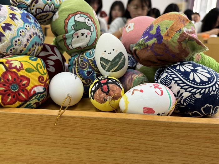 创新性地将传承中华优秀传统文化与劳动教育相结合,组织开展“迎端午 祈安康”系列主题活动。通过手工制作、包粽子等形式,让学生在劳动中感受传统文化魅力,在实践中提升劳动意识。“迎端午 祈安康”主题活动特别设计了艾草锤制作、香囊刺绣、端午彩绘等富有传统文化特色的劳动项目。"缝制香囊要注意针脚细密,填充艾草要均匀饱满……”在老师的指导下,同学们专注地进行着裁剪、缝制、填充等工序,感受到看似简单的工艺品制作需要大量耐心和技巧。经过三个小时的精心制作,一件件精美的端午手工艺品陆续完成。活动现场,大家还围绕端午习俗展开热烈讨论,从屈原故事到艾草文化,从龙舟竞渡到五