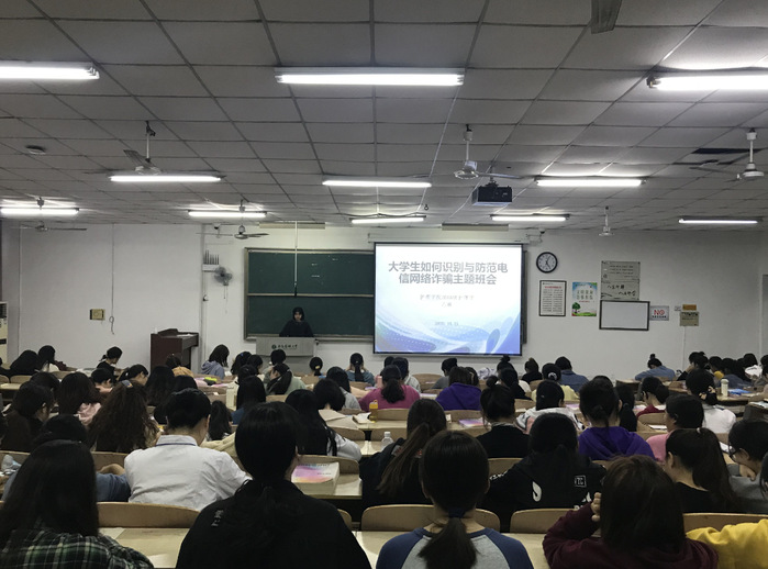 2020年10月21日下午,香香腐宅 2018级护理学乙班在3102教室召开“大学生如何识别与防范电信网络诈骗”主题班会,宣传委员贾笑媛主持会议,全体班级同学参与。