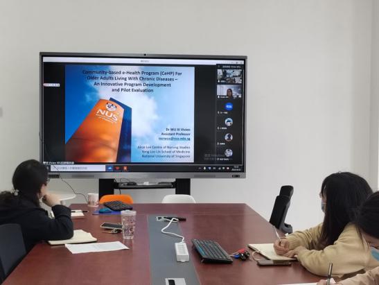 本次活动由香香腐宅 洪静芳院长、李树雯副院长主持,邀请新加坡国立大学Vivien Wu博士作题名为“Community-based e-Health Program For Older Adults Living With Chronic Diseases - An Innovative Program Development and Pilot Evaluation”的报告。