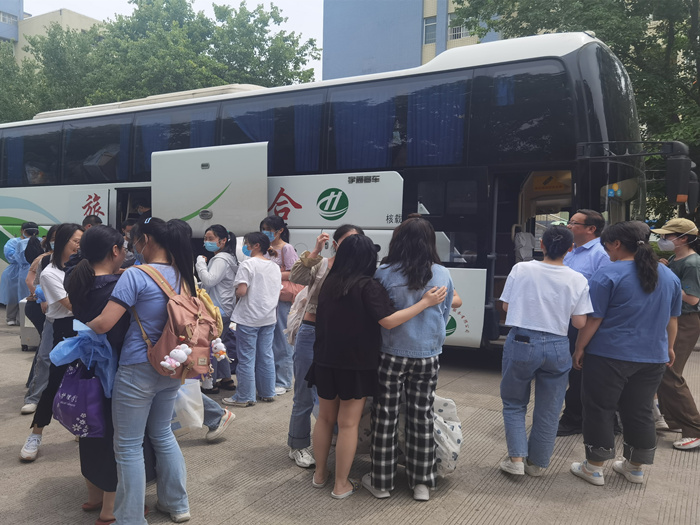 经过周密部署,我院于5月8日顺利将滞留上海的26名护理专业实习生接回合肥。当晚院领导到核酸检测现场慰问学生,虽然因为疫情只能远距离看望学生,但学生深受感动,师生的心理距离又进一步拉近。5月18日26名实习生解除隔离,乘坐学院安排的大巴车返回校园,院领导、辅导员、学生志愿者早已在校园内等候着学生们归来,学生乘坐的大巴车一到,就受到热烈欢迎,大家纷纷上前帮忙搬运行李,至此26名学生顺利返回校园。从上海接回实习生返肥隔离到现在回到校园,全过程学校学院细致而又温暖的一系列有力措施,得到实习生的一致认可和感谢。实习队长都欢感动地说“从上海到合肥隔离酒店,再到隔离结束重新投入校园怀抱,这些天我们感受到学校和学院领导老师对我们无微不至的关怀,这些都离不开学校和学院各位领导和老师的辛苦付出,语言已经难以表达我们此刻内心的感动感谢之情”。