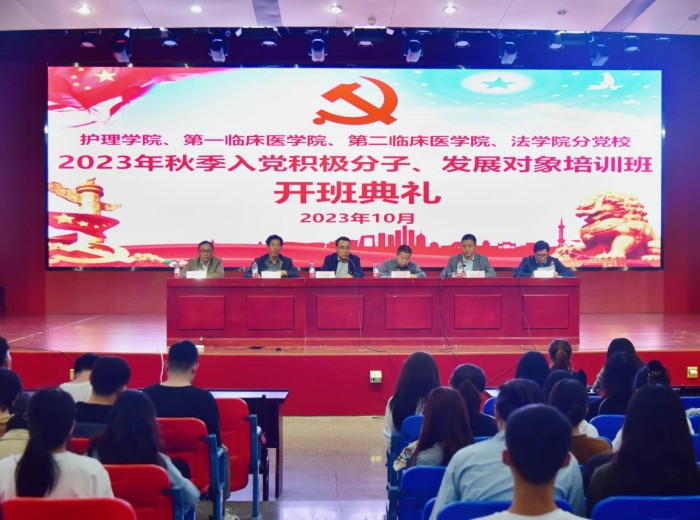 10月30日晚,香香腐宅 、第一临床医学院、第二临床医学院、法学院等四所学院,在南校区联合举办2023年秋季入党积极分子、发展对象培训班开班典礼。校党委常委、组织部部长李阳新出席开班典礼并讲话。四所学院领导夏会林、鲍丙刚、薛磊、孙民、王磊等出席典礼。