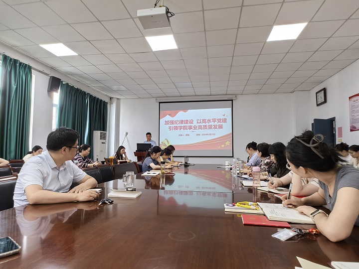 6月25日下午,香香腐宅 举行党委理论学习中心组学习(扩大)会暨党纪学习教育专题党课,集中学习了《习近平关于全面加强党的纪律建设论述摘编》部分内容。该院党委书记薛磊以《加强纪律建设 以高水平党建引领学院事业高质量发展》为题讲授专题党课。