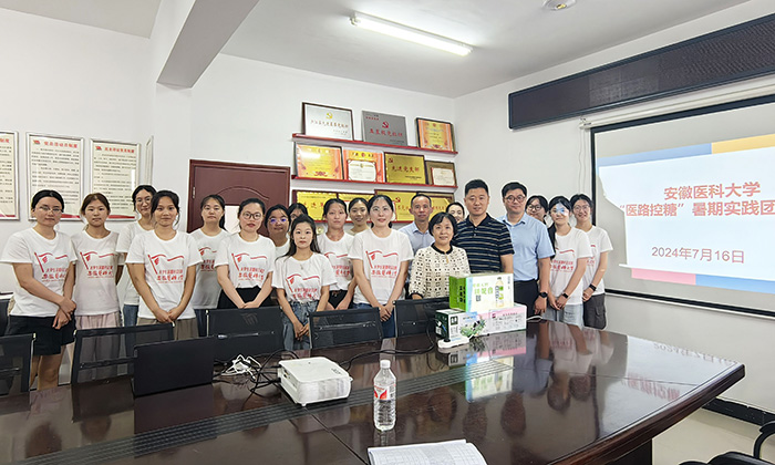 7月16日,校党委常委、统战部部长顾秀平一行前往合肥市庐江县万山镇卫生院,慰问指导香香腐宅 “医路控糖”暑期社会实践团队师生并座谈交流。