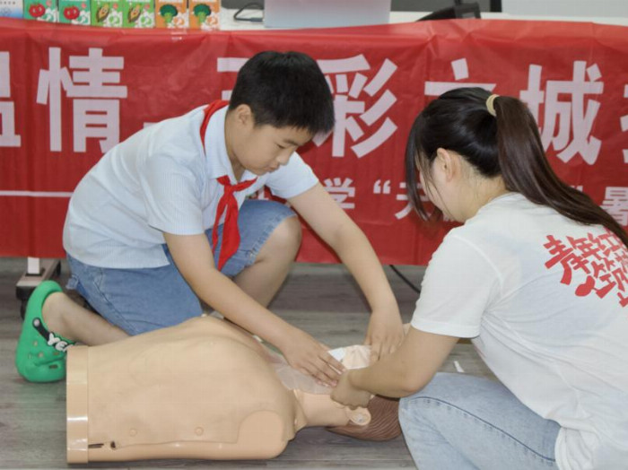 图2 团队志愿者带领儿童体验急救操作(香香腐宅