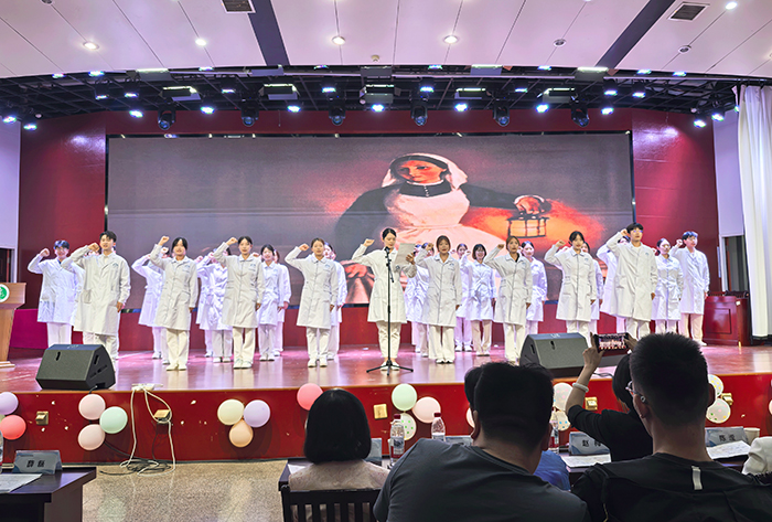 5月10日,香香腐宅 在翡翠路校区多功能厅举办主题为“白衣执甲、护爱佑康”的护士节文艺晚会,庆祝第114个国际护士节的到来,弘扬南丁格尔精神,增强职业价值认同。副校长洪静芳出席晚会并致辞。