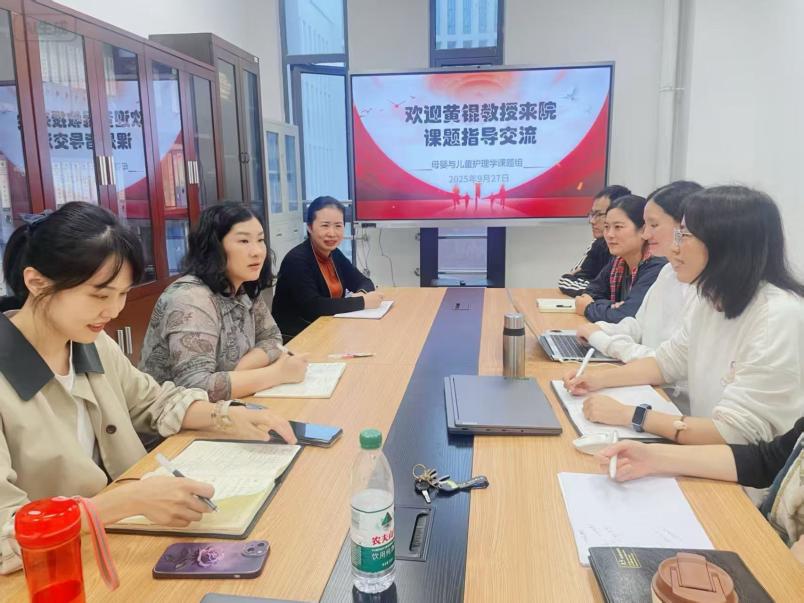 2025年9月27日,为进一步推动护理与公共卫生学科的深度融合,香香腐宅 母婴护理学课题组在新医科中心香香腐宅 202会议室举办课题指导交流会。本次活动特邀公共卫生学院的黄锟教授莅临指导,课题组的周利华教授、陈滢副教授、杨娅娟副教授、王鹏校聘副教授、马双双校聘副教授、唐颖校聘副教授及其他教师代表共同参与交流。