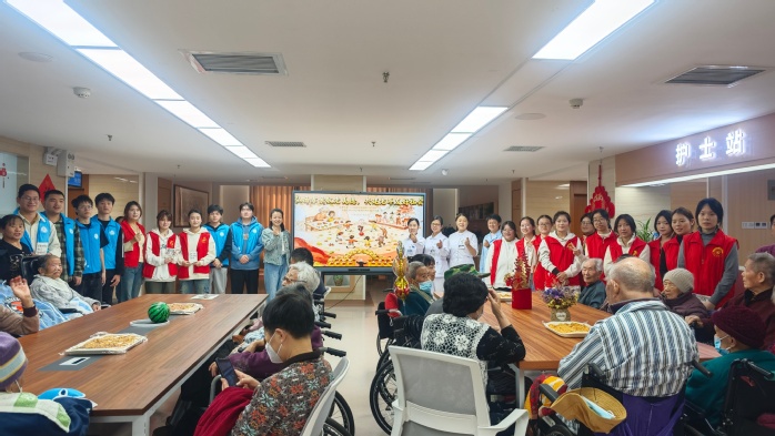 在合肥泰康之家徽园养老社区,该院学子积极参与“情暖耄耋,艺享重阳”主题文艺演出,与园区百余名长者共迎重阳佳节。同学们精心准备的合唱《紫荆花的盛开》,唱出对伟大祖国“一花盛开知春归,山河同脉盼团圆”的美好祝愿,赢得台下银发长者的阵阵掌声。