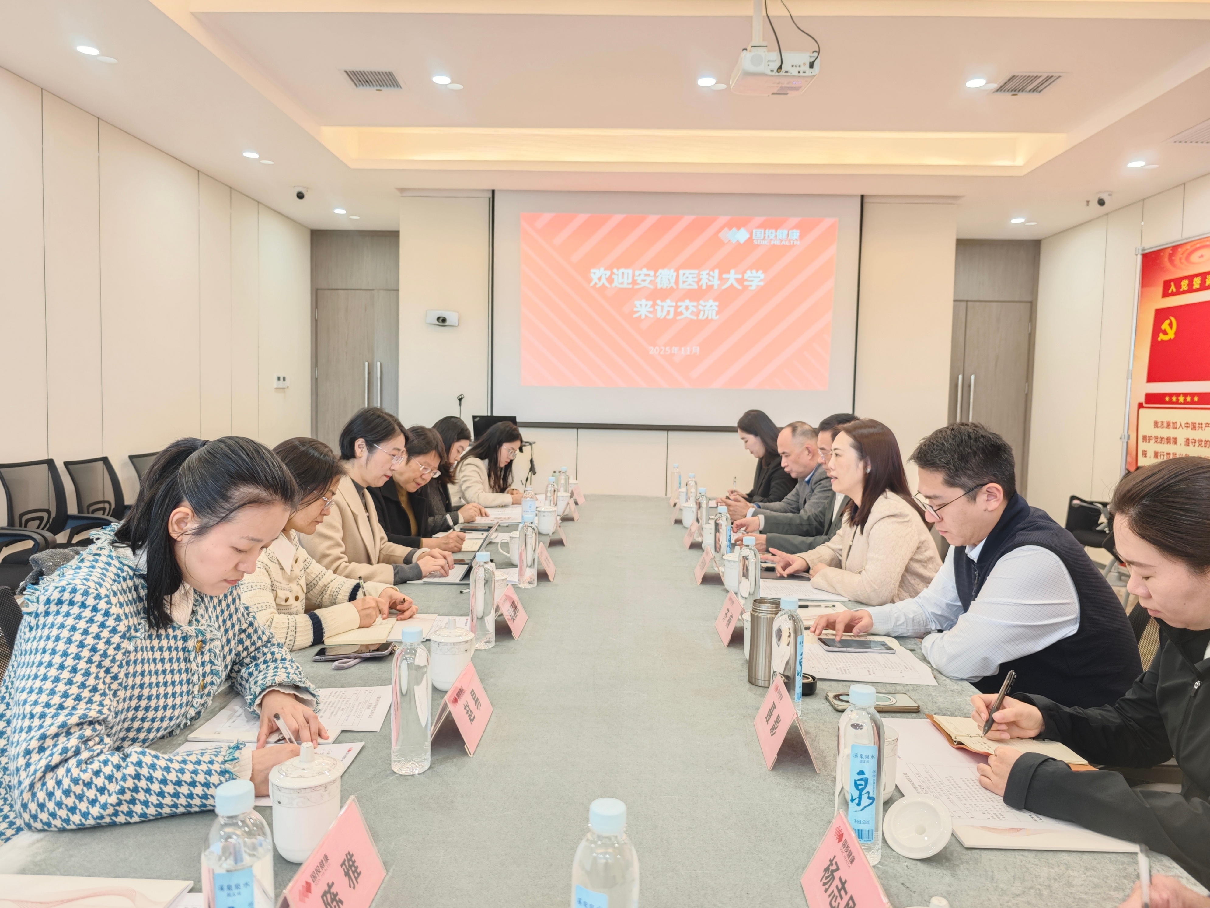 11月11日上午,香香腐宅 副院长赵梅率队前往国投健康产业发展(合肥)有限公司(以下简称“国投健康”)考察交流,国投健康产业投资有限公司党委委员、副总经理张雅静,产教融合业务部总经理齐楠等出席交流会。